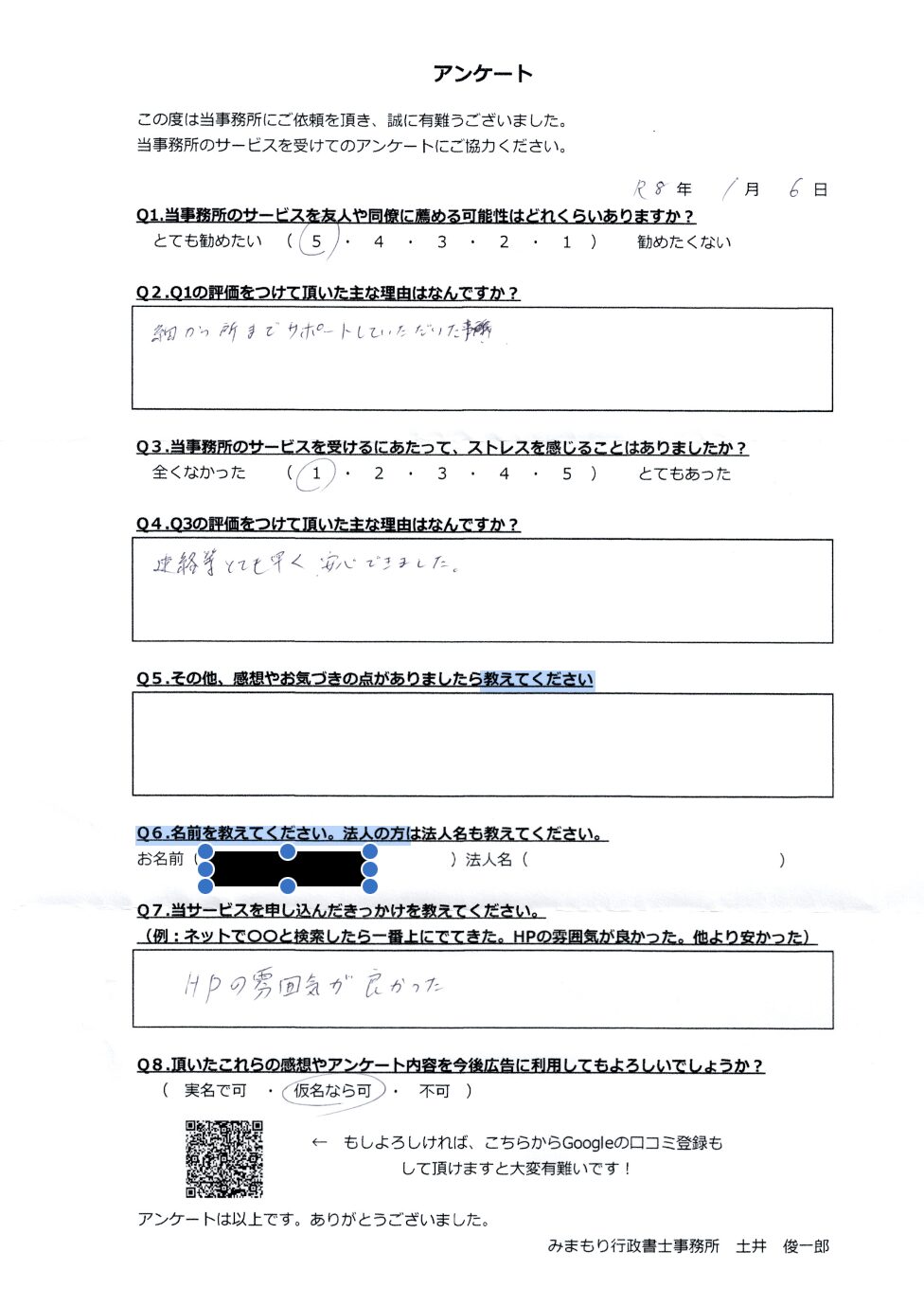 アンケートを頂戴しています
